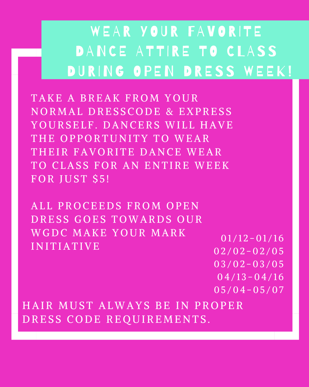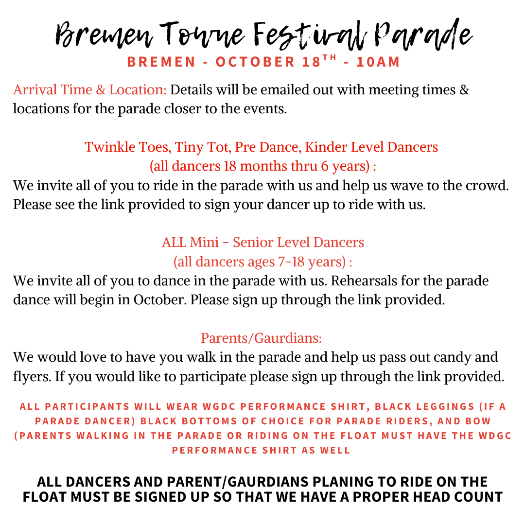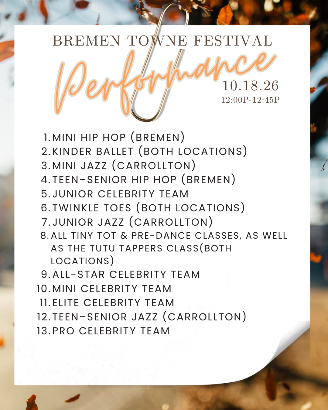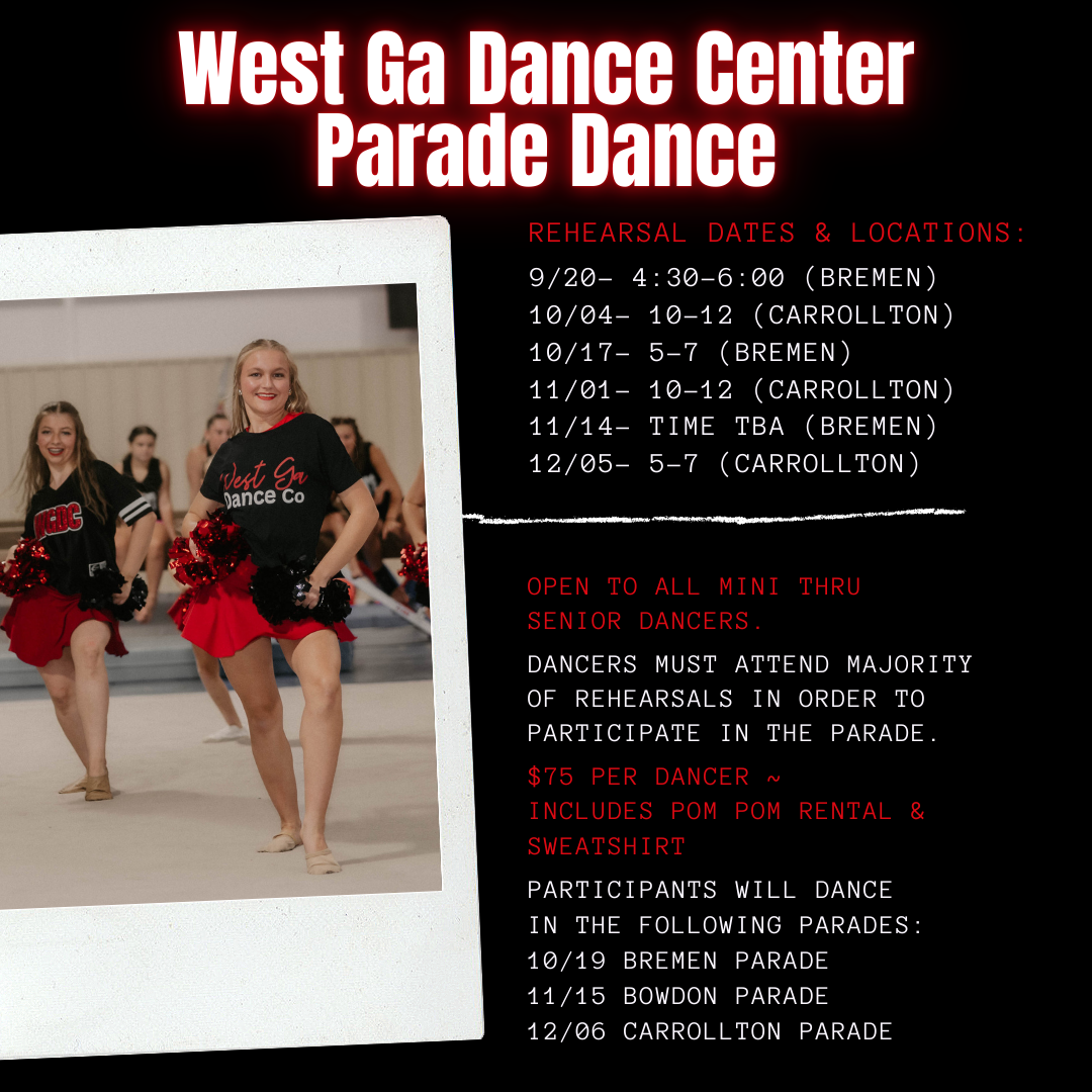 Keep up with all the latest at West Georgia Dance Center! Below you’ll find upcoming events, closures, master classes, and workshops. Click on each box for more details and registration links.